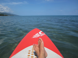 This is my first post on my new blog and I just wanted to share my morning with you! I started my day paddle boarding with my good friends, Linda and Carol. It´s absolutely amazing…gliding over the emerald waters, sun glistening off the water…ah…it´s truly paradise. Today we saw 2 sting rays, a large brown one and a small spotted one! And of course, the ¨flying fish¨ that skip across the water like a shiny silver dollars! When I´m out on the water, gazing at the endless blue sea on one side and the lush green mountains on the other, I can´t believe I am so lucky to live here now!